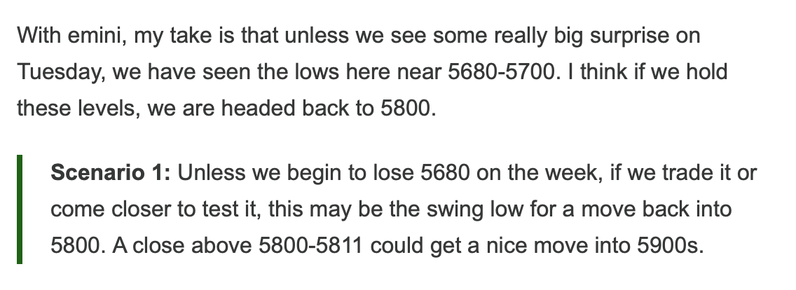 Starting with most important weekly low call in the emini S&P500 from Saturday: