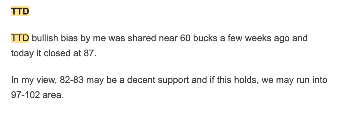 This was not the only one, I had several other. Just from last Friday, my call on TTD below.