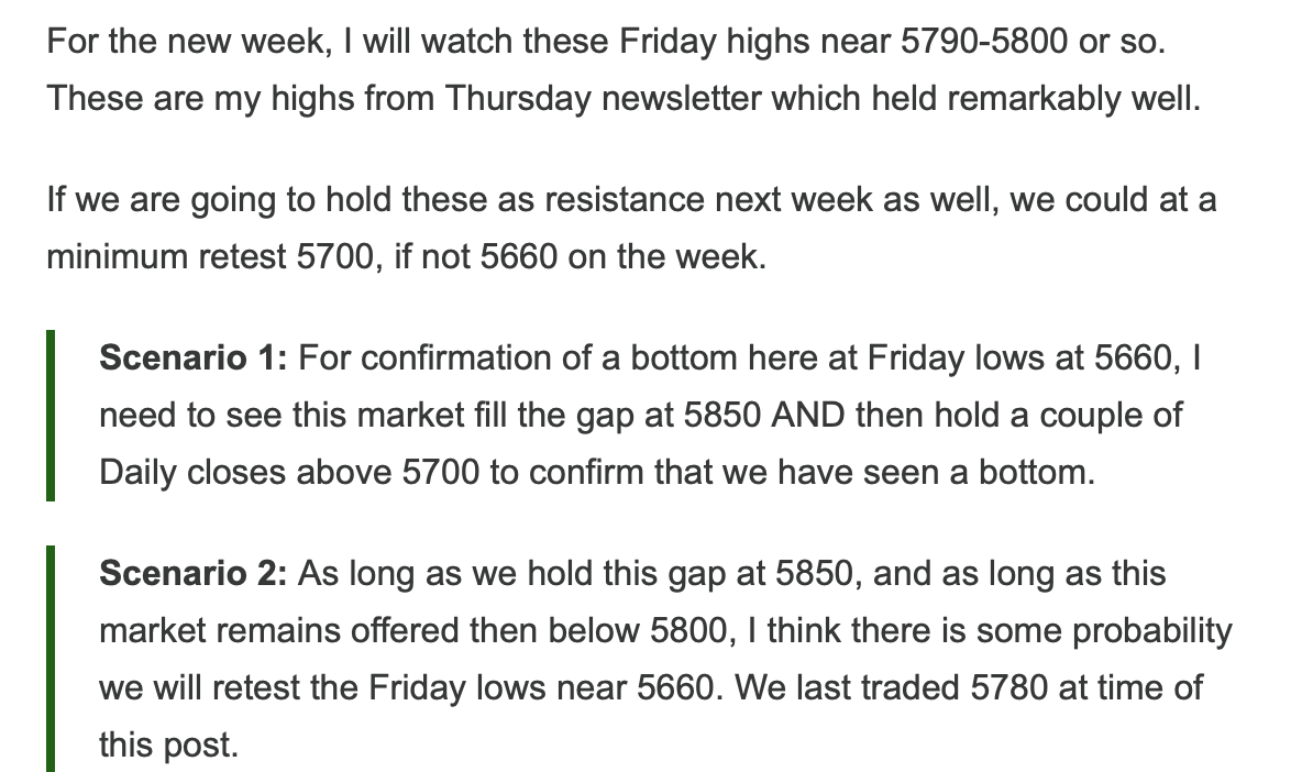 Now on my part, I did last night mention that as long as we remain below 5800, a retest of 5650 is a fair game. See below.