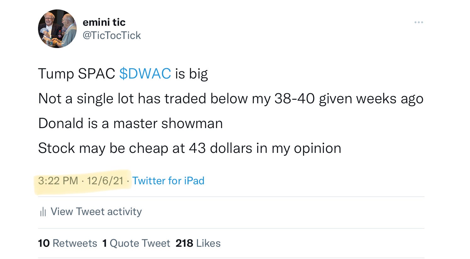 DWAC: This is what I shared at 43 on Monday, now trading 65 bucks.