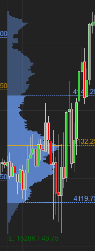 We opened close to 4120, could barely dip below it and then rallied after Europe close into close at 4160. This is fairly uncommon to see the market bracket like that within 2 levels for most of the session, but this has been the theme for several sessions now with these OrderFlow levels.