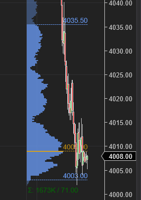 My primary bias from yesterday and Friday auction was bearish below 4130. We sold overnight from around 4100 to open the cash session below 4060. This was a trend downside day with about 60 handles lost from the open to close the Cash session near 4000. Below if the link to the plan if you have not already read it.