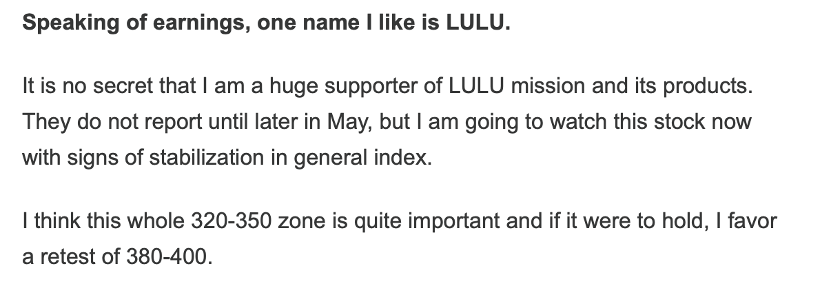 LULU closed back above 360 today.