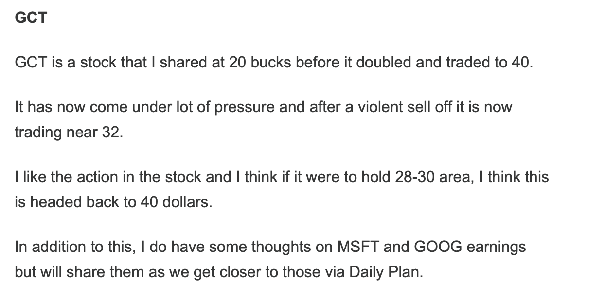 About a 10% day in GCT today.