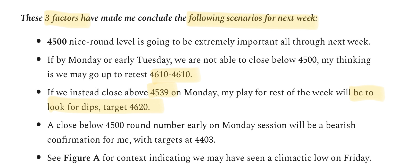 While these are my intraday levels, longer term S&P500 is within prior week’s range. Decisive trend becomes clear only on a Daily close below 4500/4539 or if we start closing consistently above 4580-4620, we may take off 🚀 and target 4700.