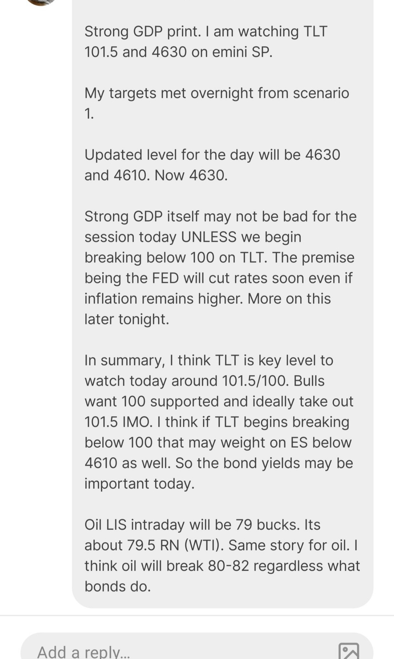 So at the open, I sent the below chat room update.
