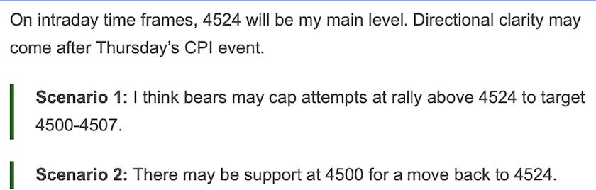 To start off the day, the expectation last night was a test of 4500-4507 below 4525 at some point.