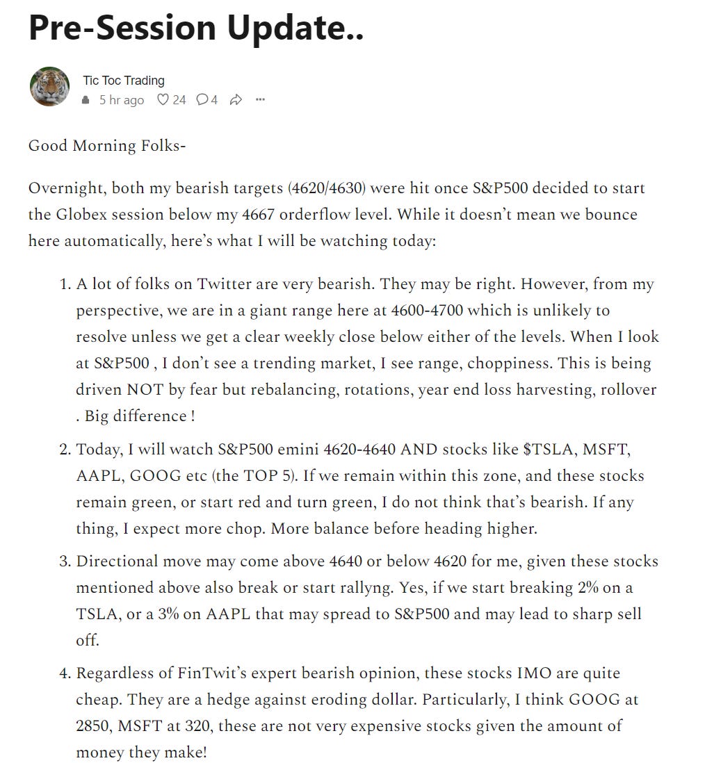 A lot of Twitter was bearish coming into the session today. I sent this AM update describing my updated levels and expectations, based on over night order flow.