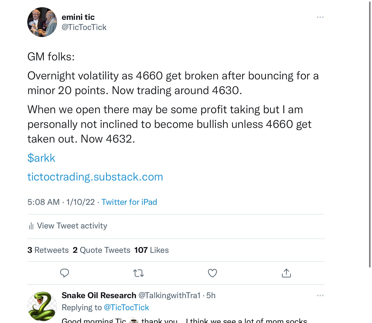 Globex night, the sellers did show up at 4680 and the sell intensified overnight after 4660 broke. When I woke up Emini was trading around 4630 and that is when I sent this tweet to my followers. Right after I sent this, S&P500 dropped another 60 points or so to trade around 4570. This did not happen overnight, the softness has been brewing for many days now and thanks to the tape, we remained on right side of the volatility all this month so far!