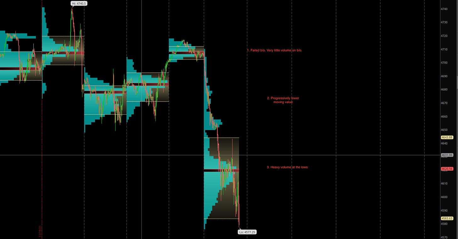 Value is progressively moving lower. In my Tuesday newsletter last week, I indicated I want to see solid value form above 4692-4696 which never materialized.
