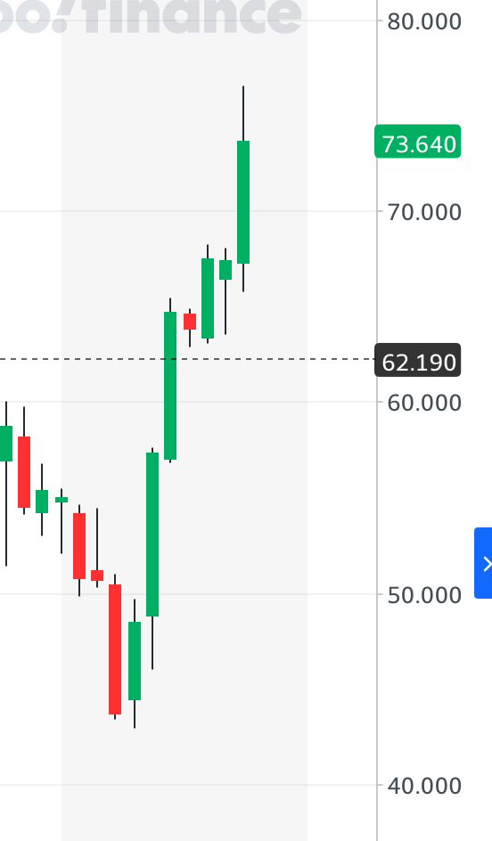 It has since found some fervor and is now up at 74.
