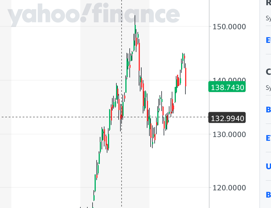 Relatively Japanese Yen is very weak against the Dollar and could drop into 110/120 area as long at 140-143 holds.