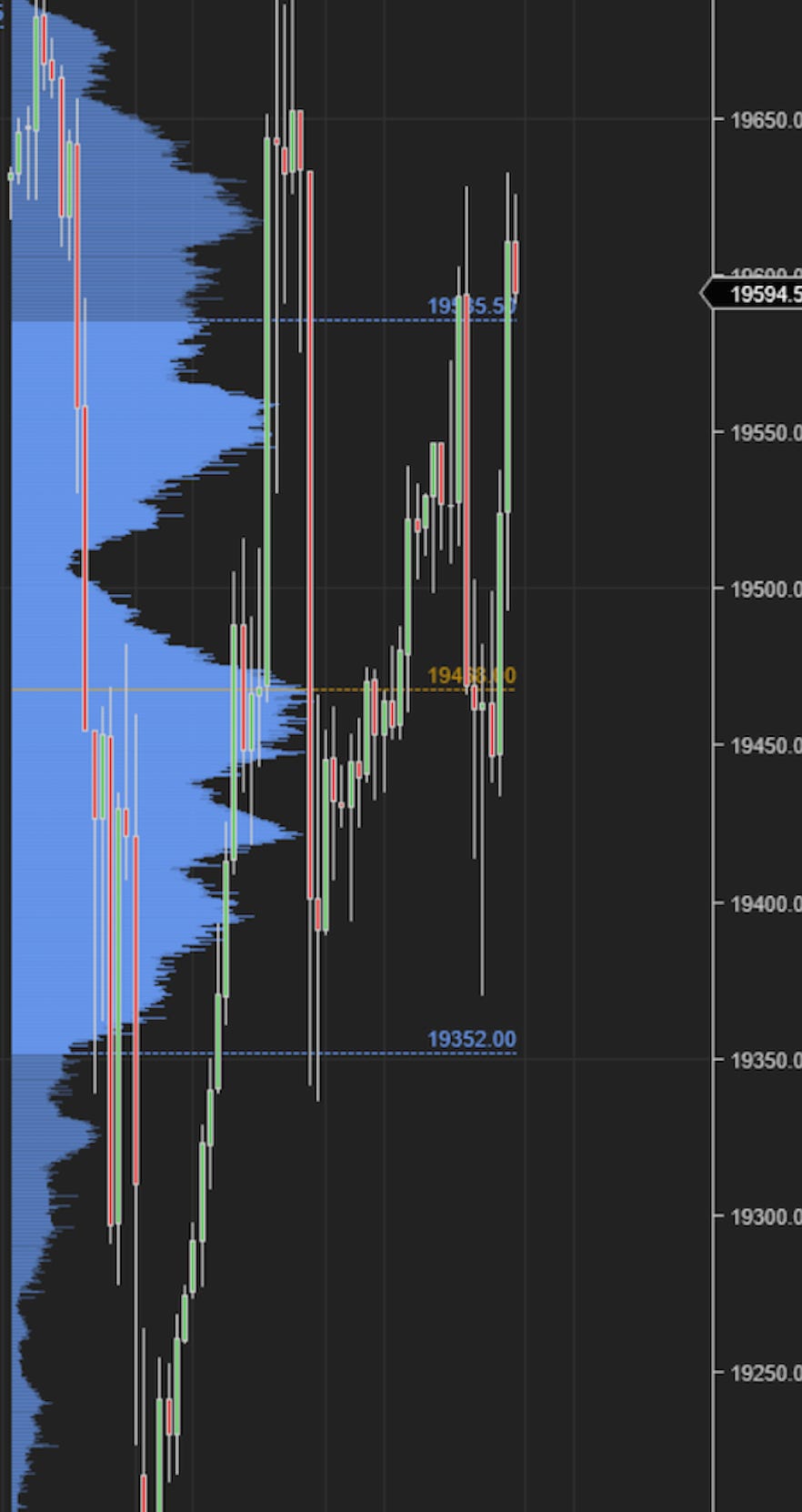 This whole auction was below the auction from prior week. Normally this will be a bearish signal. However, you need to have some nuance, and I think the reason for this was rotation from big tech into other value type names in S&P500 and Dow Jones.