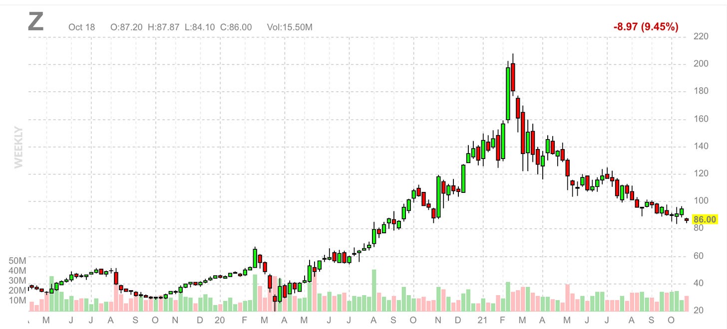 However, it tends to lag the overall housing by a few weeks to months. Between 78-81, Zillow becomes attractive from a risk:reward perspective.